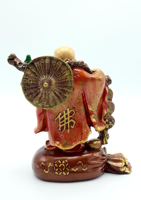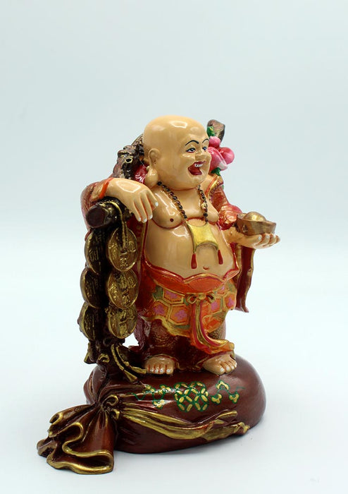 The Laughing Buddha is a symbol of happiness, contentment and prosperity. He is called 'Budai' in Chinese. He is the Buddha of abundance and happiness. He is shown wearing a robe and prayer bead around his neck.