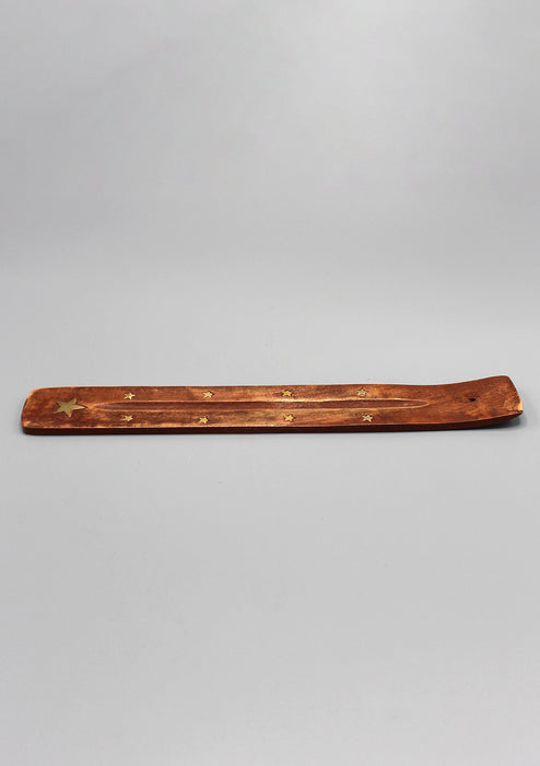 This long boat design wooden incense burner has been painted and decorated with stars. Simple yet artistic, this incense burner has a small hole for the incense sticks to be inserted. The overall length of the wood insures that the ash is collected properly within the incense burner.