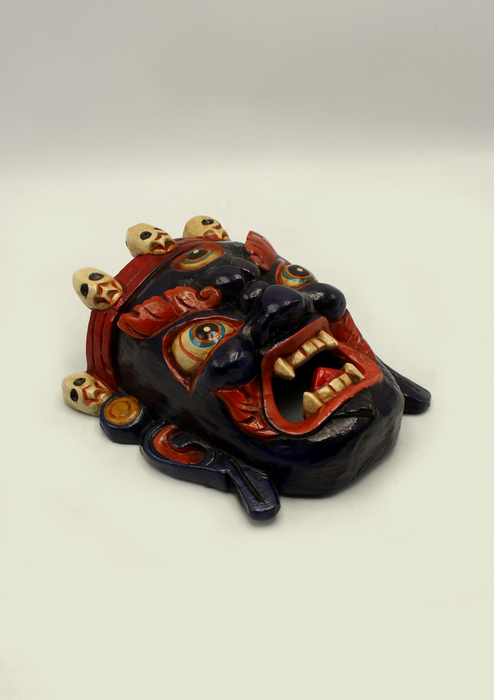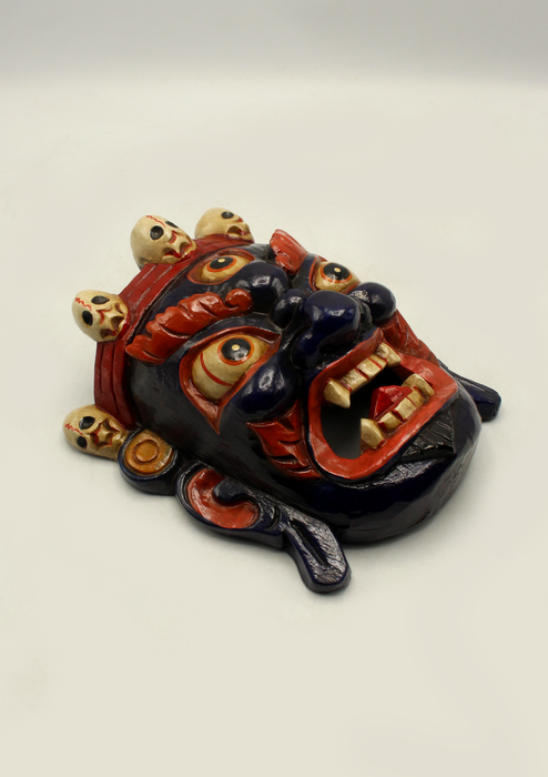 Handcarved and HandPainted Wooden Bhairab Wall Hanging Mask - Blue