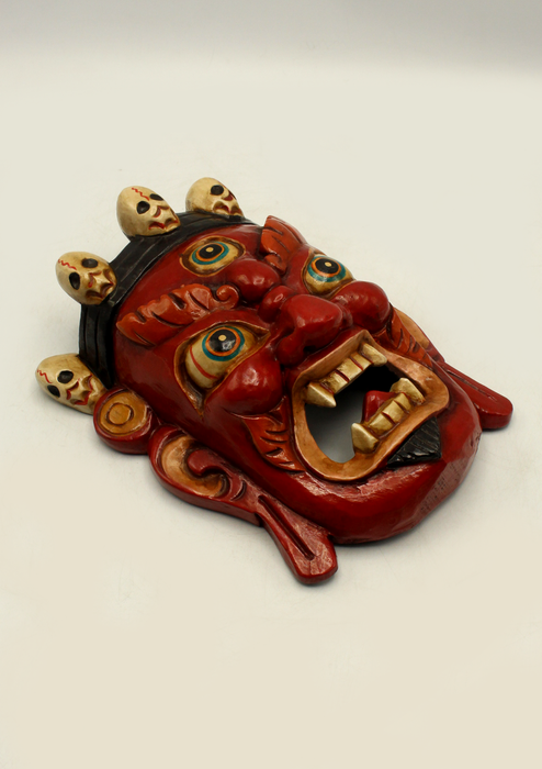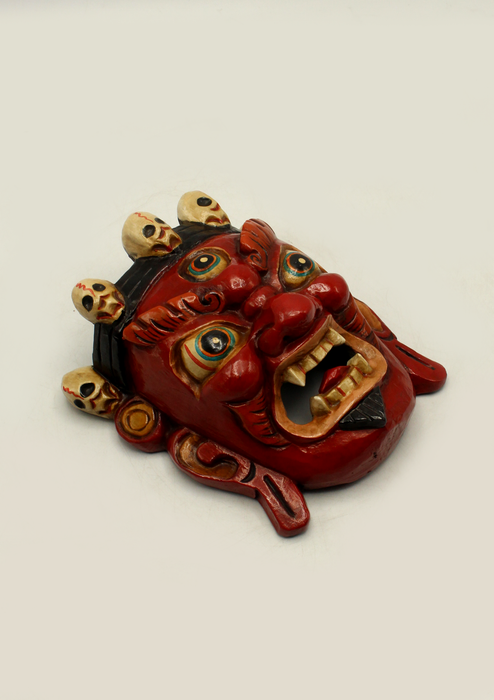Handcarved and HandPainted Wooden Bhairab Wall Hanging Mask - Red