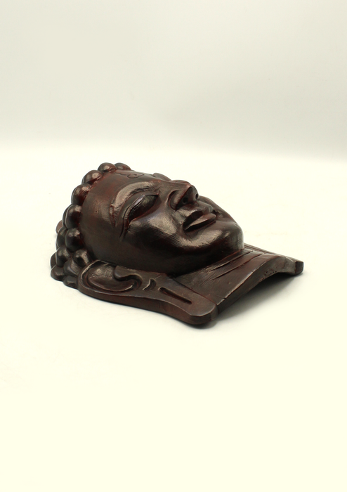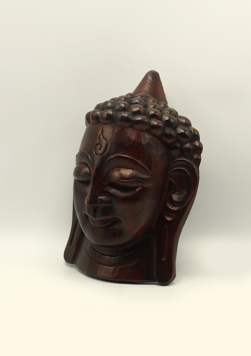 This is a beautifully handcarved wooden mask of Buddha. This mask has been beautifully carved by our tamang artisan from Changu Narayan. The mask has been made with great detail.