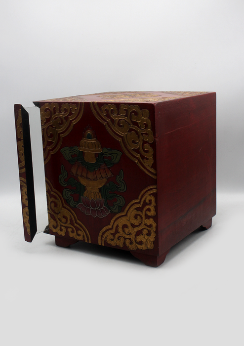 HandCrafted Tibetan Wooden Box for the Ritual Treasure Vase