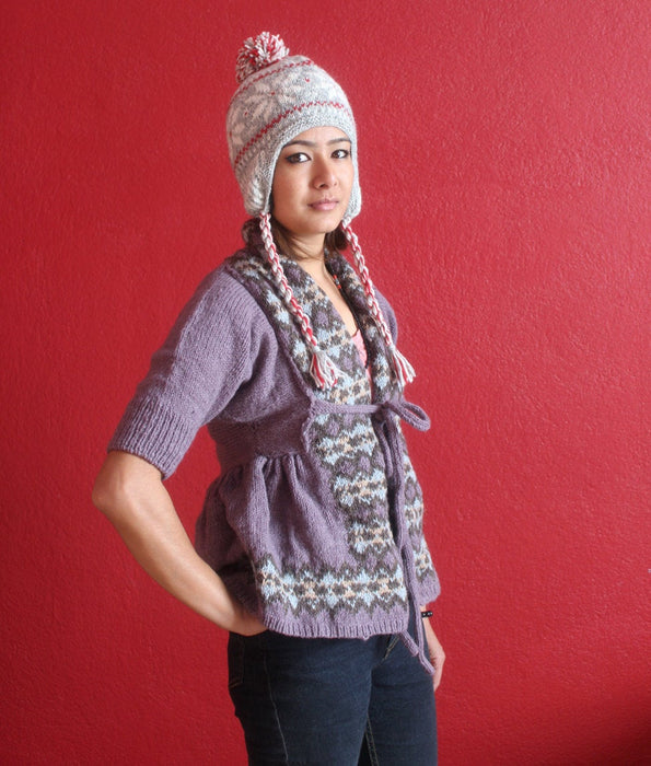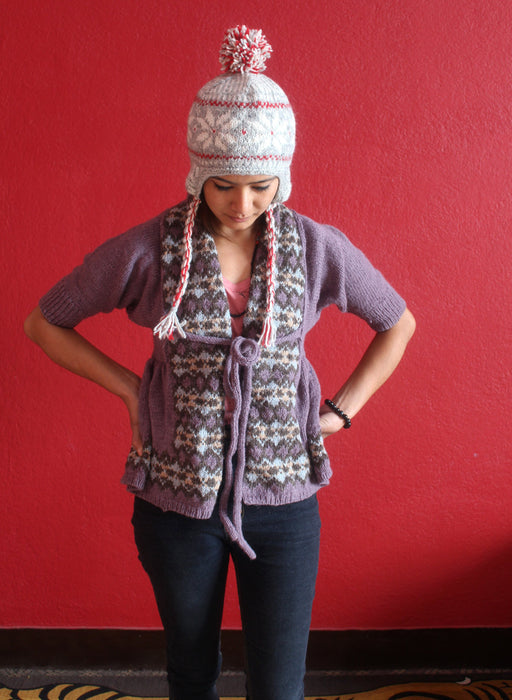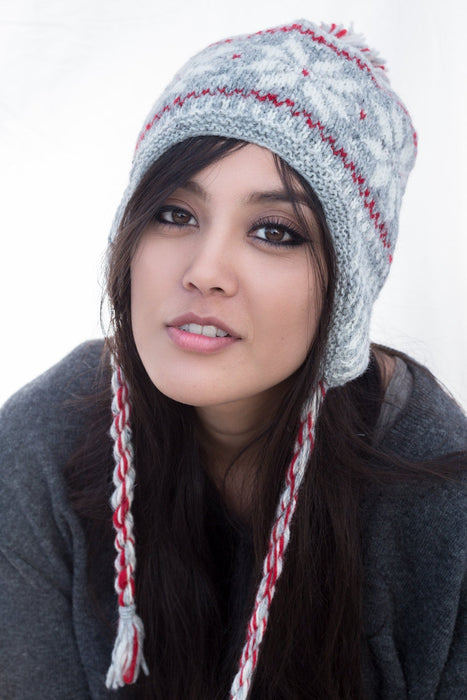 HandKnitted Snow Flake Sherpa Woolen Cap