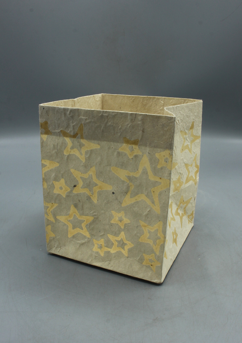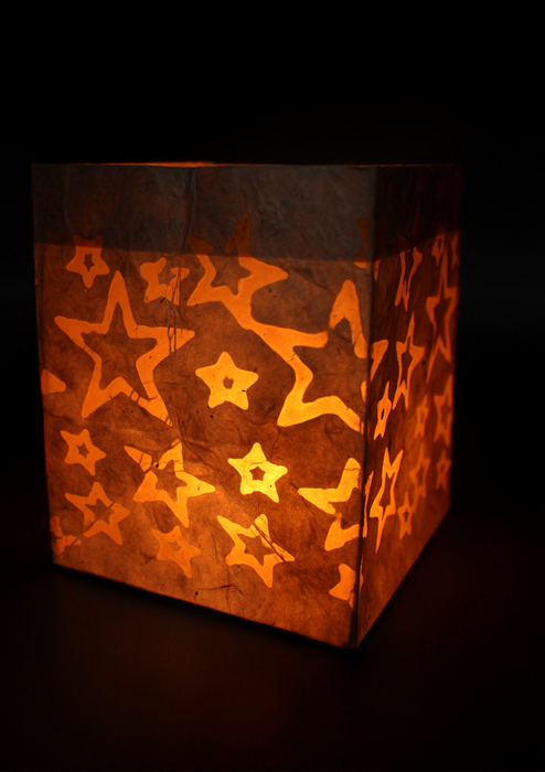 Handmade Star Printed White Lokta Paper Candle Lamp