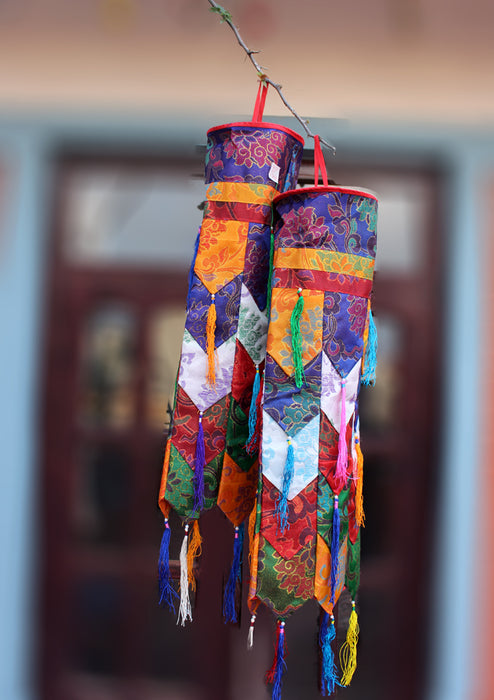 These are beautiful and colorful Polyester Brocade ceiling Hangings also called Chukors. These chukors are tubular shaped. They represent different merging or interlocking of various elements.
