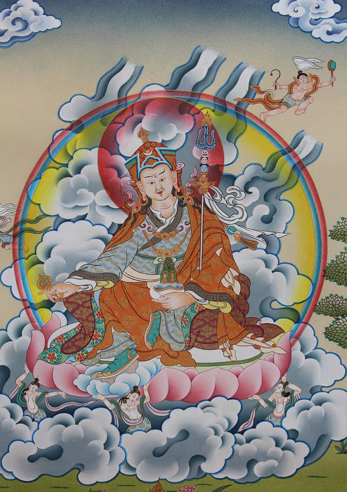 A beautiful thangka of Guru Rinpoche painted on a cotton canvas using pigments of vegetables and minerals. This marvelous painting is very powerful and intricate work of the artist is eminently visible. This piece can last for a long time if placed properly and taken care of.