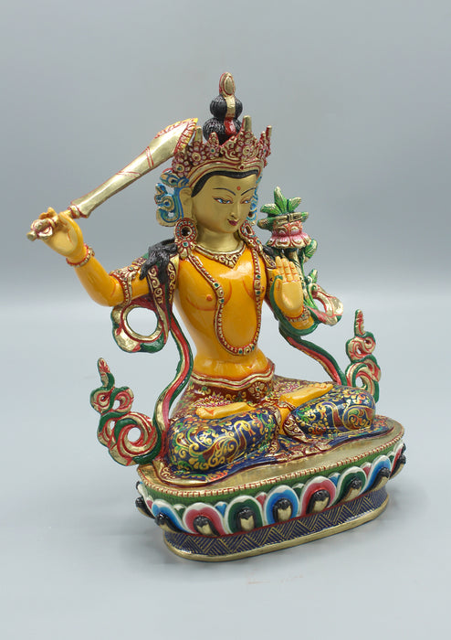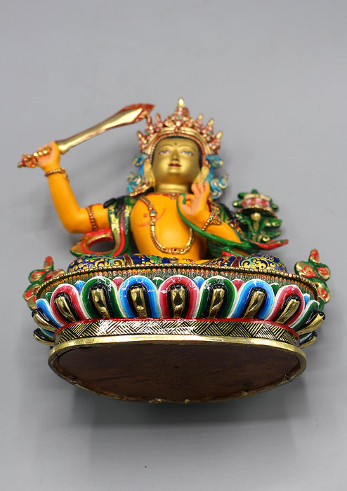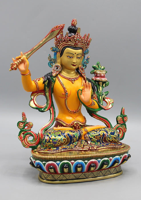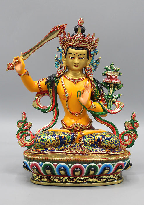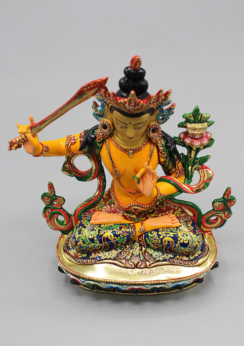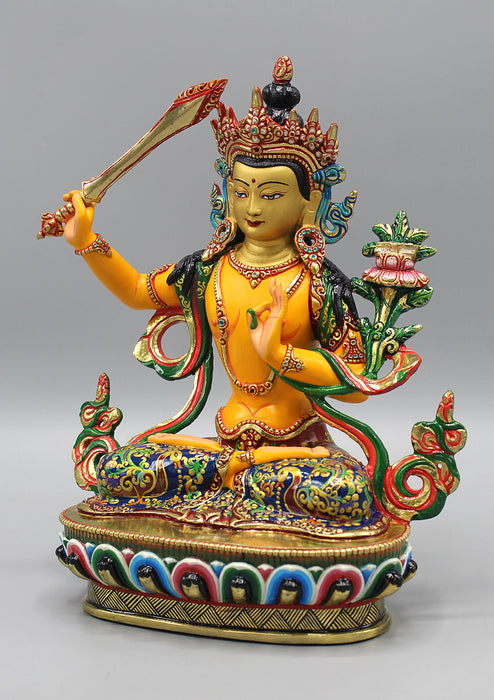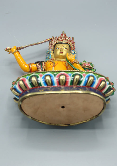 Handpainted Tibetan Bodhisattva Manjushree Jampelyang Statue