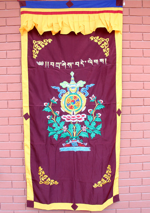 This is a very wonderfully embroidered Silk fabric Door curtain from Nepal. The heavy embroidered work with colorful threads makes this door curtain very attractive and gorgeous. These door curtains are found in many entrances of houses and temples in Nepal and Tibet.