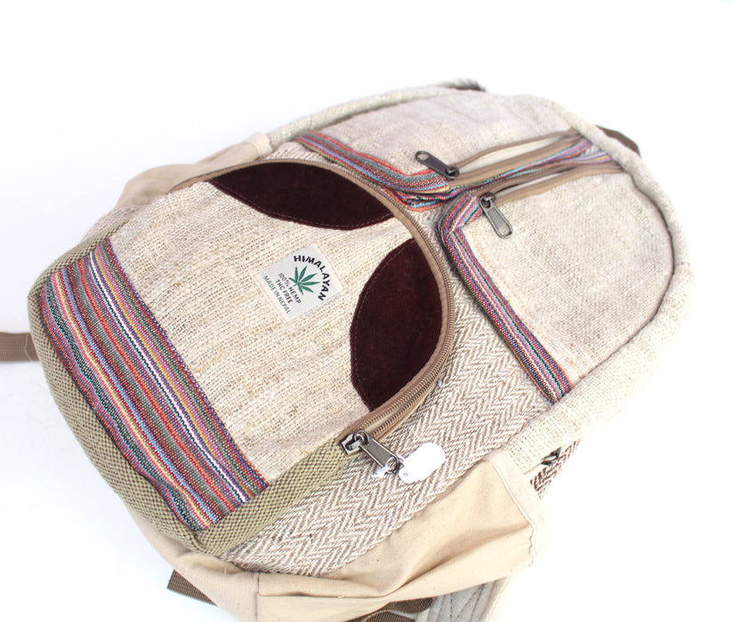 This natural hemp backpack is completely handmade using natural fibres like hemp and cotton in Nepal. This backpack has multi zipper pouches to store your nic nacs and notes. Great to carry to school, colleges as it has a laptop or notepad pouch along with large space for books and notes. It also features three zipper pouches at the front side to keep your pens, cells, nic nacs and more. With inner foam materials at the back and straps, this backpack is extra soft to carry.