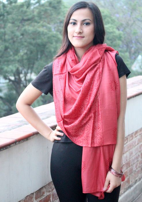 Hindu Om Printed Coral Brown Cotton Shawl From Nepal