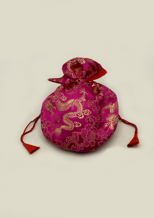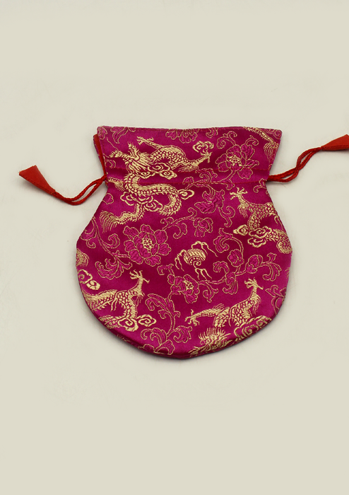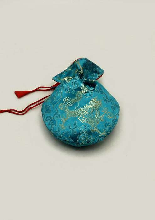 These are beautiful small drawstring pouches to keep your mala, jewelry, coins, nic-naks. Made of Hongkong silk with beautiful floral and dragon motifs, these bags come very handy to pocket small items. Very beautiful to look and durable, these pouches are made by Nepalese women artisans in Nepal.