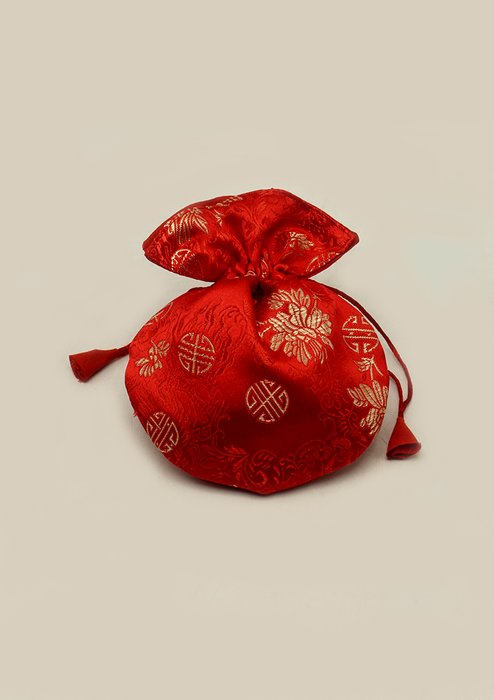 Hongkong Silk Drawstring Pouch with Floral Motifs, Jewelry Pouch