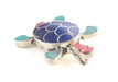 This is a beautiful faux Coral, Lapis and Turquoise inlaid Turtle white metal pendant with silver plating. Turtle represent the mother earth and it also symbol signifies good health and long life.