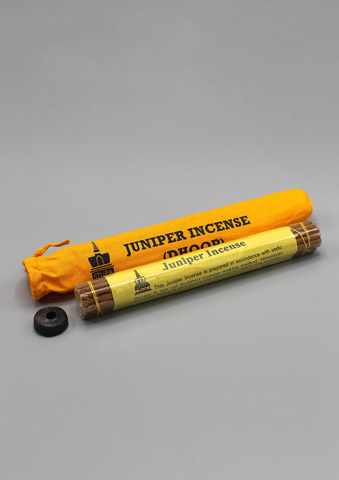 Juniper Tibetan Incense (Dhoop) is prepared in accordance with vedic recipe and old Buddhist incense making method. Himalayan aromatic herbs and tree barks are blended to create this incense. This incense has been made by Lama Dorjee. The incense is wrapped in a cotton bag in order to avoid damage. The incense should keep in a dry place free from moisture.