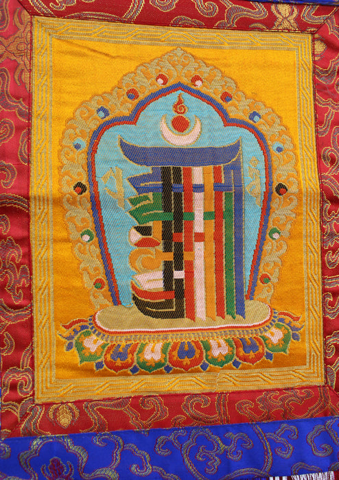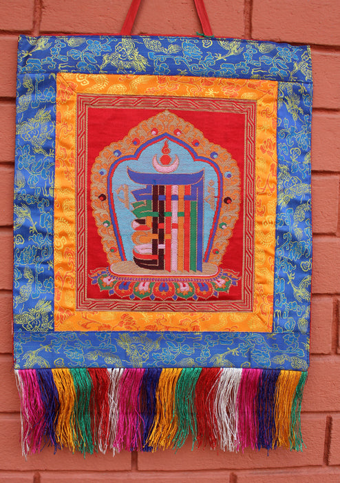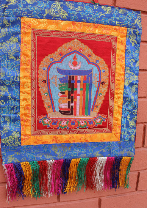 This is a beautifully designed Tibetan Kalachakra brocade fabric polyester wall hanging banner handmade in Nepal.