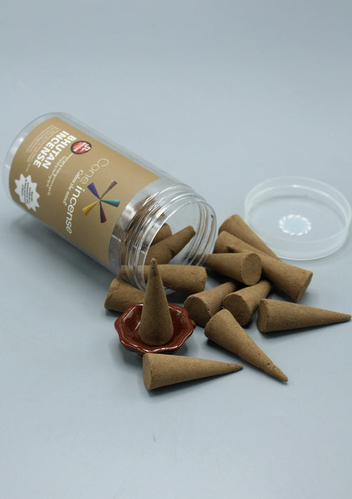 This is a Bhutanese handmade Grey Cone Incense to calm the mind. Made in a traditional way following the principles described in the Tantric text Kavavira, which elaborately deals with medicinal plants of different purposes and objectives for human health and welfare of their living.