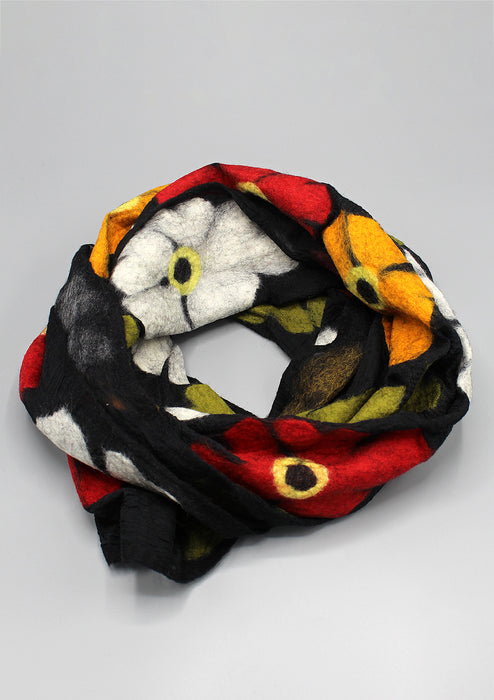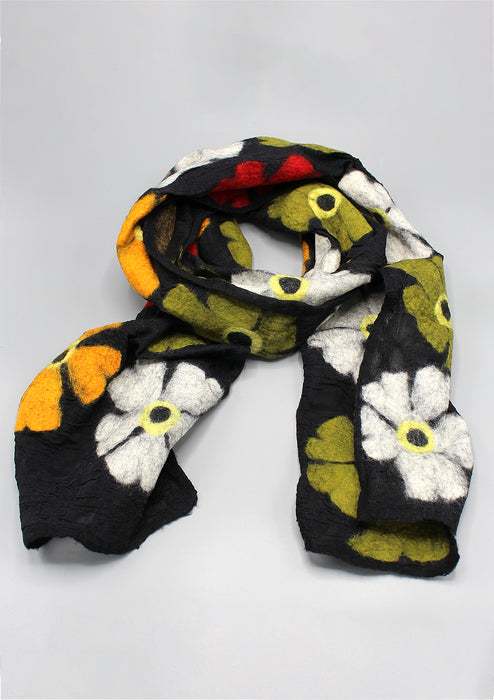 This is a handmade felted woolen scarf handmade in Nepal. Felt scarf is very popular. The benefits of a felt wool scarf is that it is lightweight, handmade and cannot be replicated. The scarf is Eco friendly and perfect for every occasions.