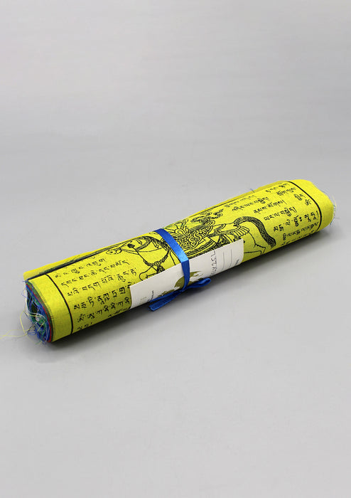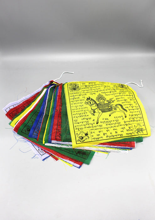 This is a wooden block printed Large Windhorse Tibetan Prayer Flag made of Polyester.