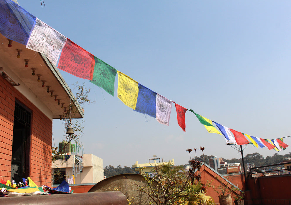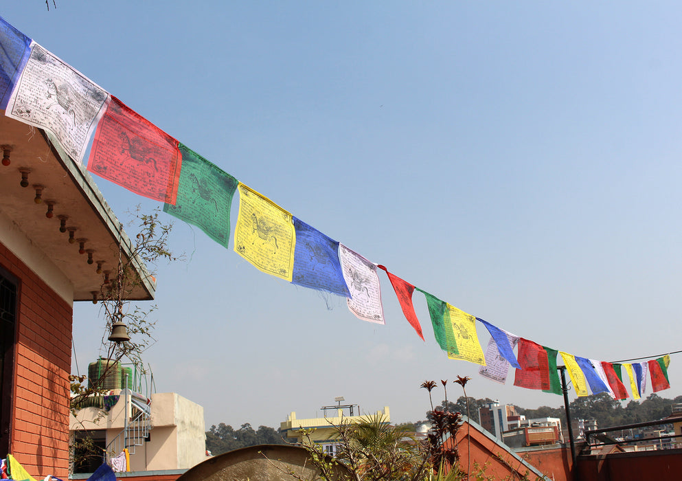 The Tibetan word for prayer flag is "Lung ta", meaning, "wind Horse". When wind blows (expressing the quality and nature of mind) the sacred prayer flag flaps in the breeze.