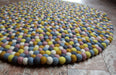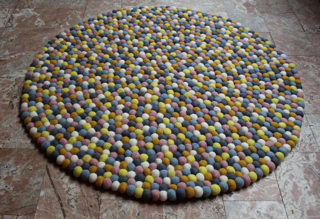 These are wonderful and vibrant felt pom pom rugs made entirely by hand. The felt balls are felted by our women artists using imported New Zealand Sheep wool and are sewed together to make this beautiful round felt rug.