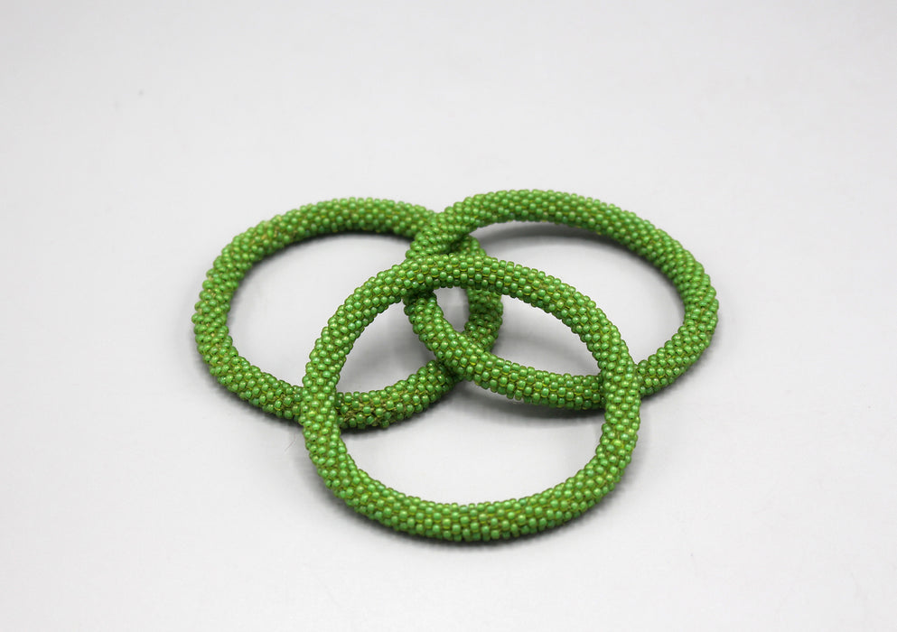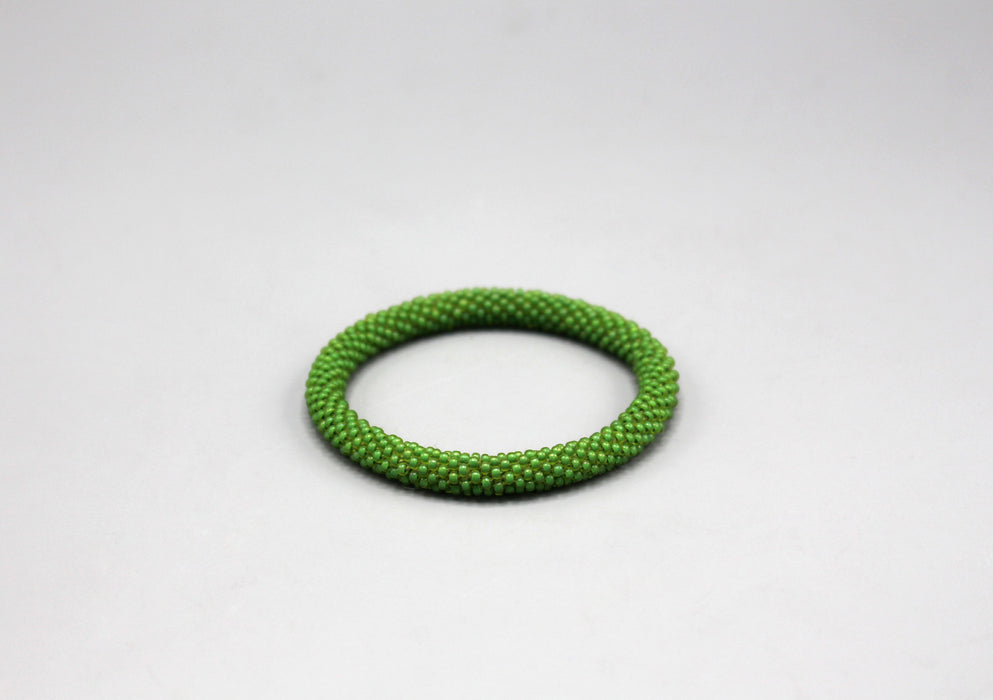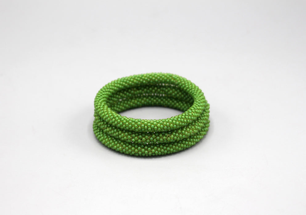 These fairly traded glass beads bracelet are meticulously crocheted by our women artists. Our woman artist carefully hand-strung these Roll On bracelet to give them the best shape and design.