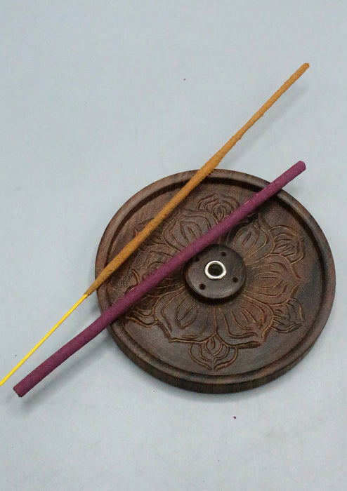These beautiful wooden Incense Holder(also known as Incense Burners) are hand carved by our artists and form a shape of a Lotus flower. The incense has a big hole to hold incense sticks without the thin wood. There are 4 small holes surrounding the big hole to hold the incense with thin wood. These incense holders hold the incense in a right manner to collect all the ash and remains after the incense has burnt. These are handmade in Nepal. The lovely design of a flower a sign of devotion, offering and love.