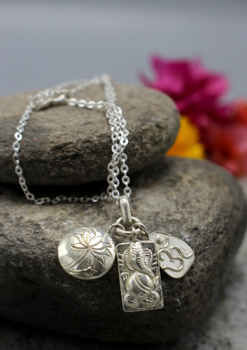 This is a beautifully hand carved Ganesha Pendant with Lotus and Om Charms. The pendant can be wear with any kind of chain of your choice. The Ganesh is is one of the most popular deity in Hindu culture and is considered the eliminator of obstacles. Hindus worship Lord Ganesh To begin any auspicious work or enterprise in hope that they may accomplish their work successfully. This locket can be wear during meditation or even while traveling. You can also hang it in your bag.