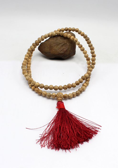This is a lotus seed mala that is handmade in Nepal. Mostly used for Mantra Chanting, Japa, Prayers, prostrations, these are 108 lotus seeds prayer beads. It can be worn as a necklace or can be wrapped around the wrist three to four times while not in prayers.