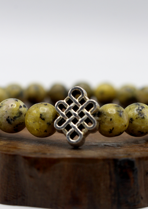 This beautiful  Malachite Tibetan Beads Stretchable Yoga bracelet with Endless Knot as a spacer, sewn into a highly durable elastic thread. These are beautifully handcrafted Beaded adjustable bracelets.