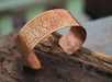 This is a Tibetan copper bangle with broadness fitting all the Tibetan Eight Auspicious Symbols. It is adjustable to a certain degree which is why should fit most of the wrists. It is a unisex bracelet.