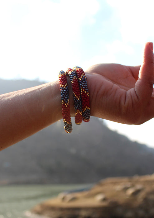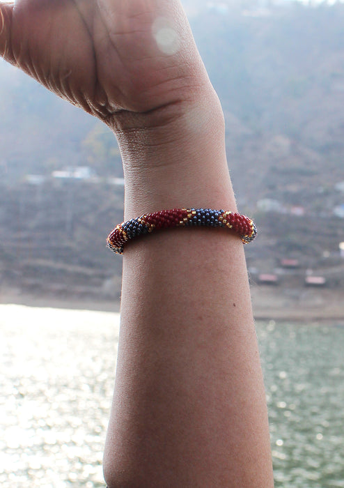 Maroon & Mixed Beads Nepalese Roll on Bracelet