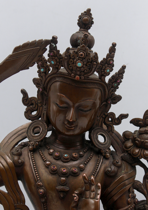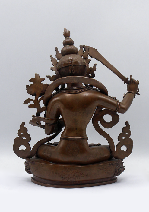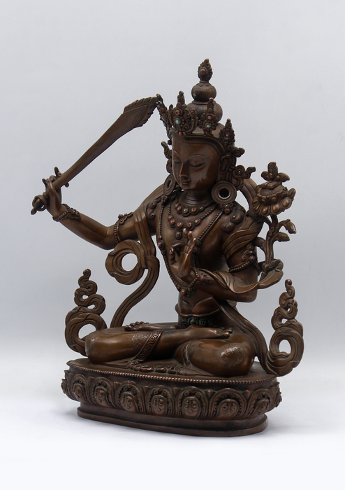 Masterfully Handcrafted Oxidized Copper Manjushri Statue – 11”