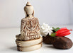 Meditating Buddha Resin Statue with Intricate Carvings of Various Postures of Buddha and Floral Motifs