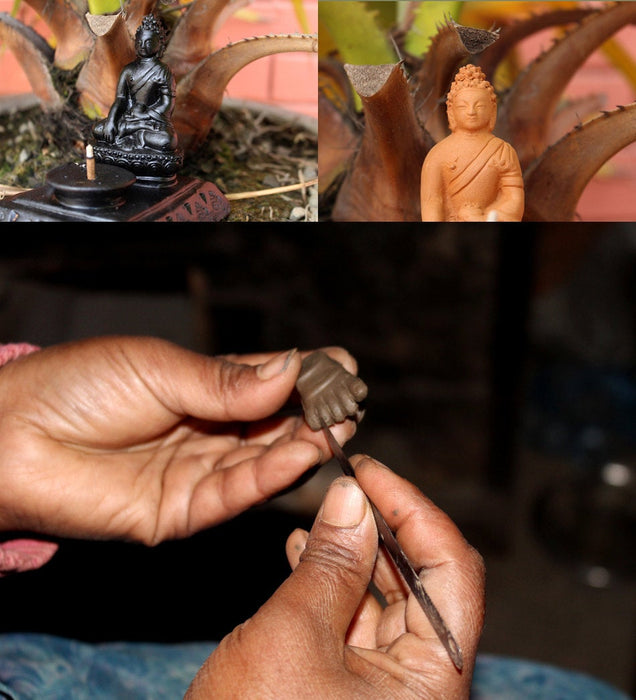 This beautiful Terracotta Buddha Statue Incense Holder(also known as Incense Burner) holds the incense in a right manner to collect all the ash and remains after the incense has burnt. This is handmade using terracotta in Nepal. Looks like Buddha is blessing the ones offering the incense. Must grab item, feel blessed.