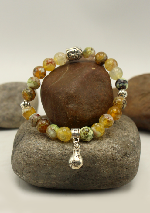 These handcrafted, stretchable yoga bracelets are made with beautiful stones on a highly durable elastic band, fitting most wrists.