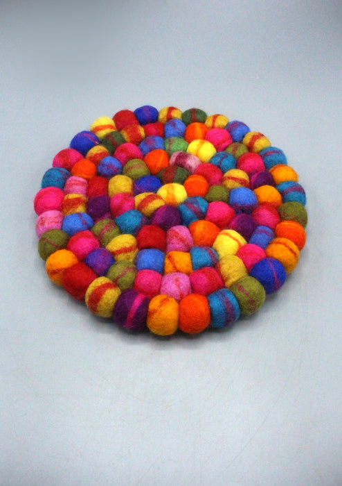 Multi Color Felt Balls With Stripes Tea Coaster
