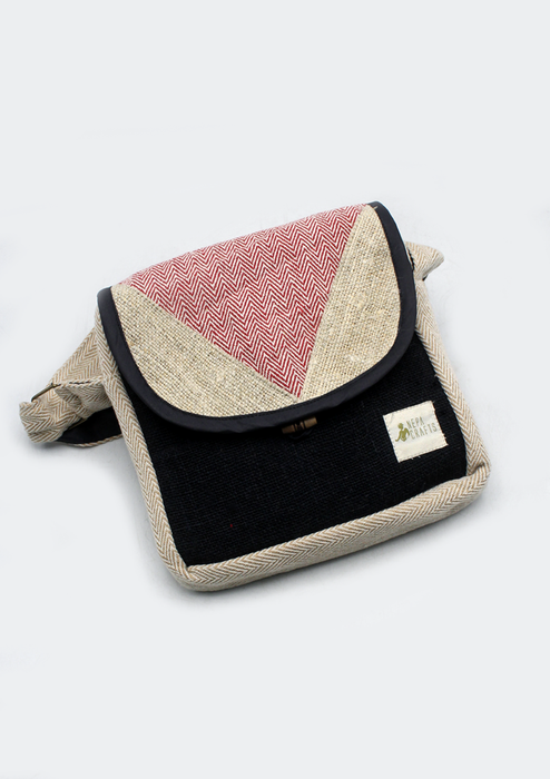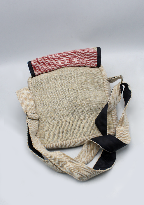 This eco-friendly bag is handmade in Nepal using a blend of 55% hemp and 45% cotton fibers. Its compact and functional design, featuring a convenient flip cover with a wooden button closure, makes it perfect for daily use, travel, or carrying your essentials with ease.