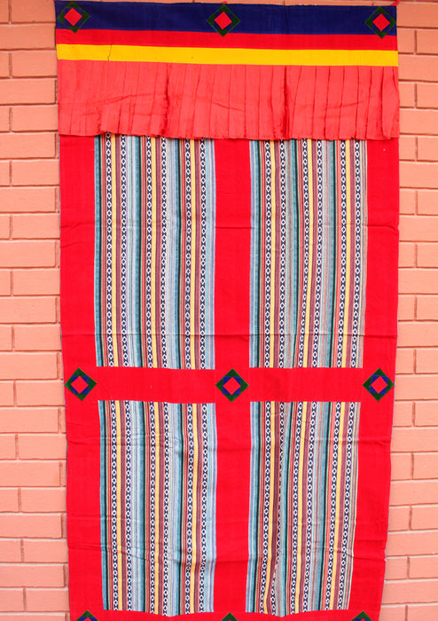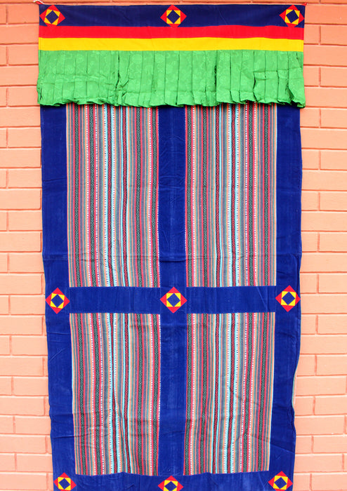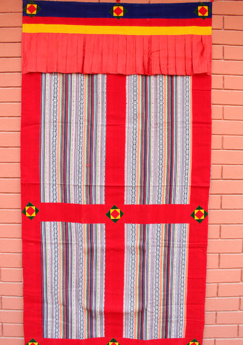 Multicolor Bhutanese Fabric Cotton Door Curtain with Velvet Border