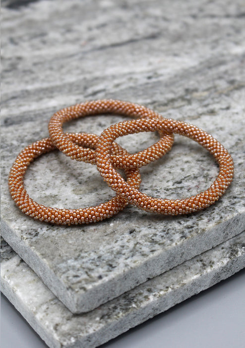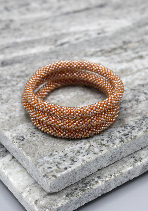 These fairly traded glass beads bracelet are meticulously crocheted by our women artists. Our woman artist carefully hand-strung these Roll On bracelet to give them the best shape and design.