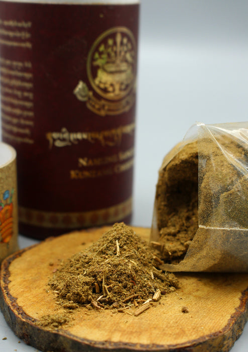 This Namling Sangze incense is made of 100% natural herbs. This powder incense is is excellent for purifying one's environment or for offering the deities.