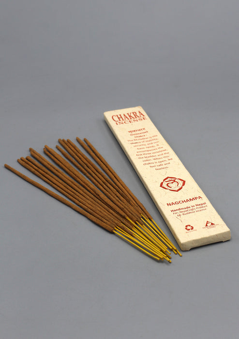 These premium Nagchampa root chakra incense sticks are specially prepared by NepaCrafts following yoga and ayurveda scriptures to enhance the proper functioning of the Root Chakra.