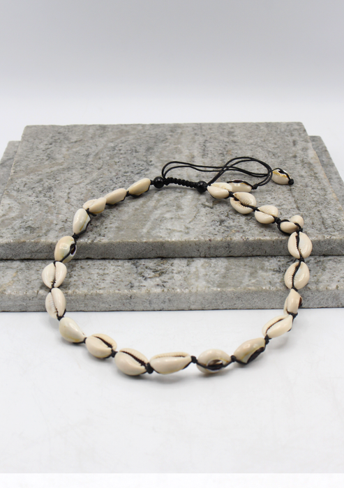 Introducing our  Kaudi Shell Necklace, a stunning piece of jewelry that embodies the allure of the sea and the elegance of natural beauty. This necklace is meticulously crafted to showcase the enchanting cowrie shells, renowned for their smooth, glossy surfaces and distinctive shape. Each shell is carefully threaded onto a delicate chain, creating a captivating and versatile accessory. Whether worn alone as a statement piece or layered with other necklaces for a bohemian-inspired look, our Cowrie Shell Necklace adds a touch of coastal charm and timeless style to any outfit. Elevate your jewelry collection with this exquisite and unique piece that celebrates the ocean's treasures.