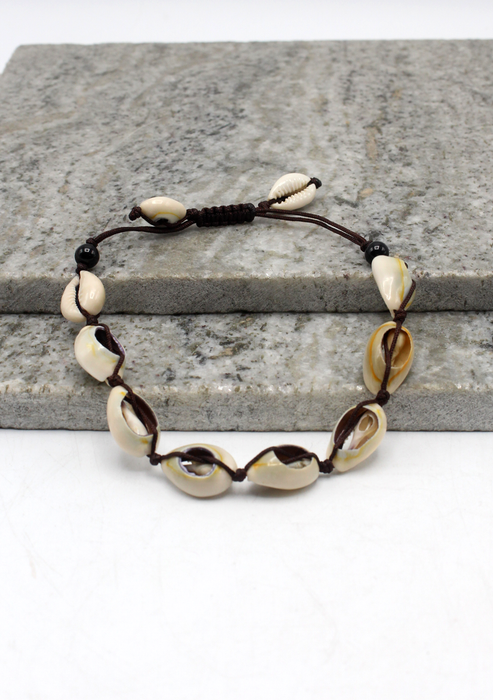 Introducing our Cowrie Shell Bracelet, a beautifully handcrafted piece that captures the essence of the ocean's treasures. This bracelet features cowrie shells arranged in a simple yet captivating design, strung together on an adjustable cord. Each shell's natural elegance and glossy finish make every bracelet a unique embodiment of beach-side charm and bohemian style. Embrace the beauty of nature with this timeless accessory, perfect for adding a touch of coastal allure to any outfit.