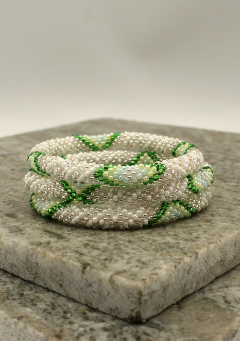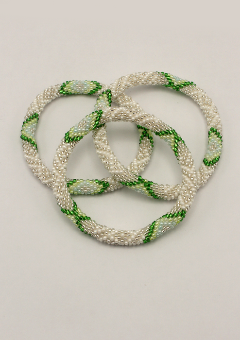 These fairly traded glass beads bracelet are meticulously crocheted by our women artists. Our woman artist carefully hand-strung these Roll On bracelet to give them the best shape and design.