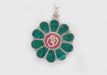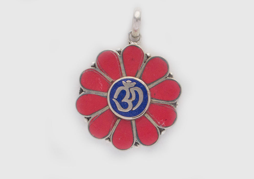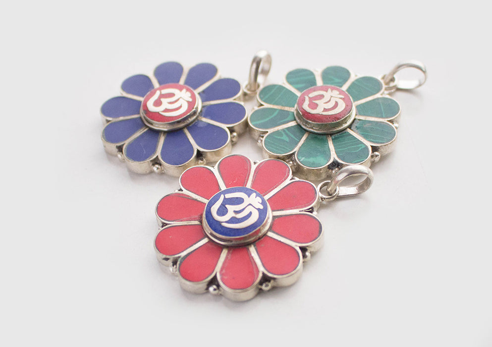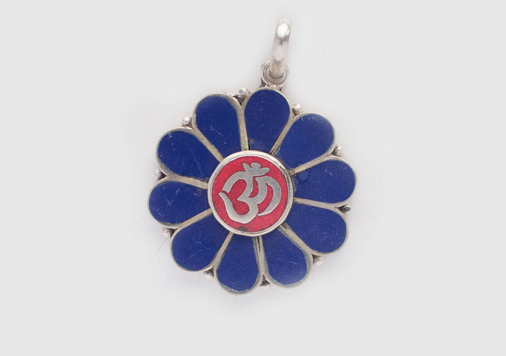 Om Embossed Inlaid Flower White Metal Pendant