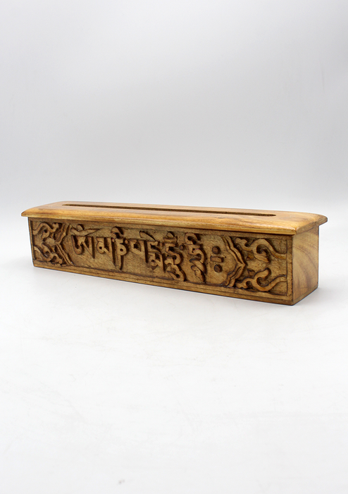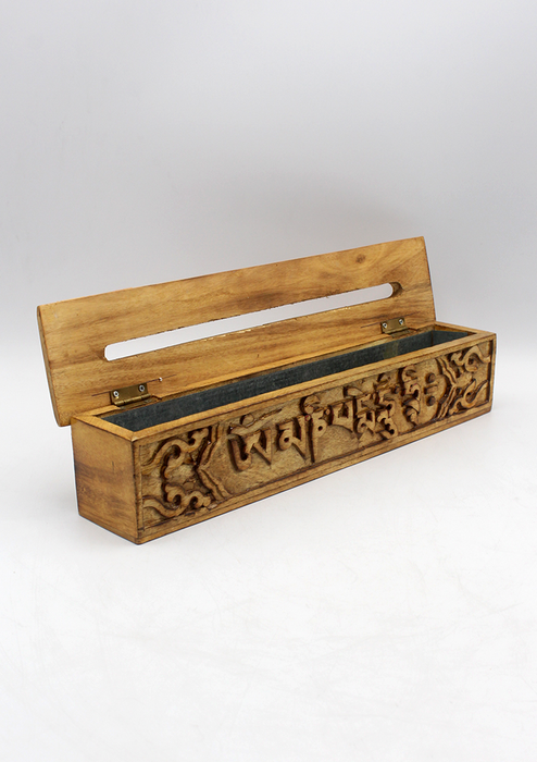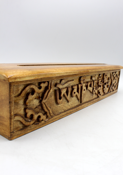 These beautiful rectangular Om Mani Carved Handcrafted Wooden Incense burner boxes are hand crafted. These boxes are beautifully painted and have carvings. All the work in these incense burner boxes are meticulously hand carved and hand painted.