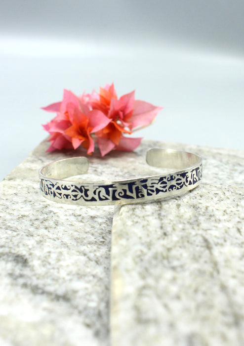 Beautiful lapis inlaid Tibetan OM Mani Adjustable White Metal Silver plated Bracelet