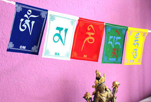 Om Mani Large Velvet Prayer Flag-5 sheets