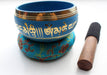 This is a beautifully Om Mani Padme Hum painted singing bowl handmade in Nepal. The singing bowl is painted with blue color and Om Mani Padme Hum in golden color. The back side of the singing bowl is painted with Om Mani.