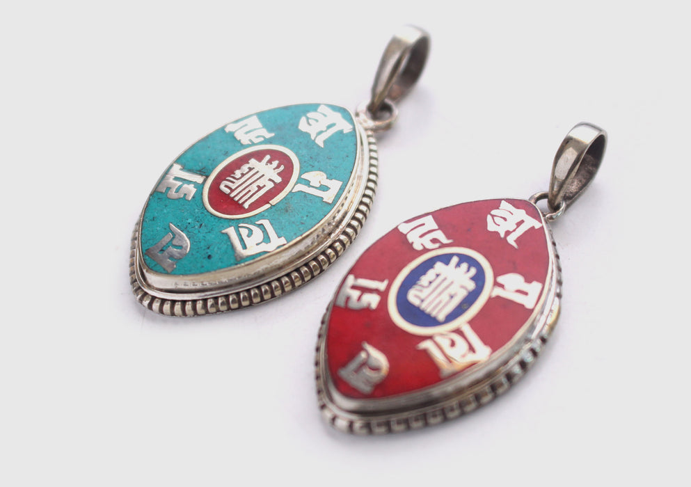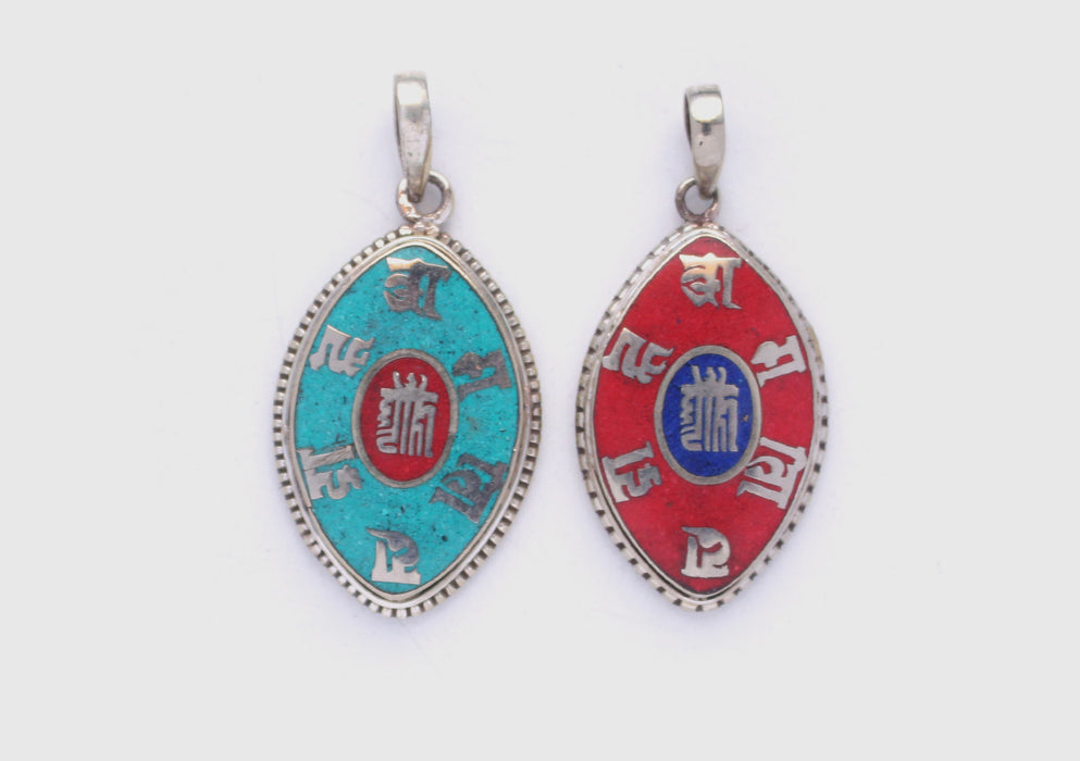 Om Mani Tibetan Kalachakra White Metal Tibetan Pendant